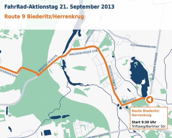 Der Startpunkt ist um 9.30 Uhr an der Kreuzung Triftweg/Berliner Straße. Dort haben wir einen Startplakat aufgehängt. Tourenleiter ist der Magdeburger ADFC-Vorsitzender Mario Peine. Mitfahrende sind herzlich eingeladen.