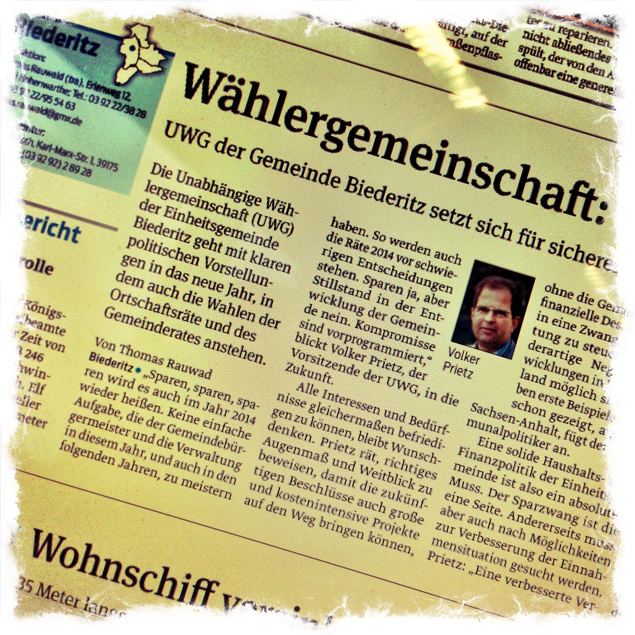 n der heutigen Ausgabe der Burger Volksstimme umschreibt die Unabhängige Wählergemeinschaft (UWG) Biederitz ihre Forderungen zur Kommunalwahl. Neben einer ausgiebigen allgemeinen Umschreibung der Situation in der Gemeinde Biederitz, bleibt nur eine konkrete Forderung in dem Text übrig: Ein besserer Hochwasserschutz. Dieser Forderung können wir uns nur anschließen und sind auch sicher, dass mit Hilfe des Landes die Ortschaft Gerwisch rasch einen besseren Deichschutz bekommen wird.