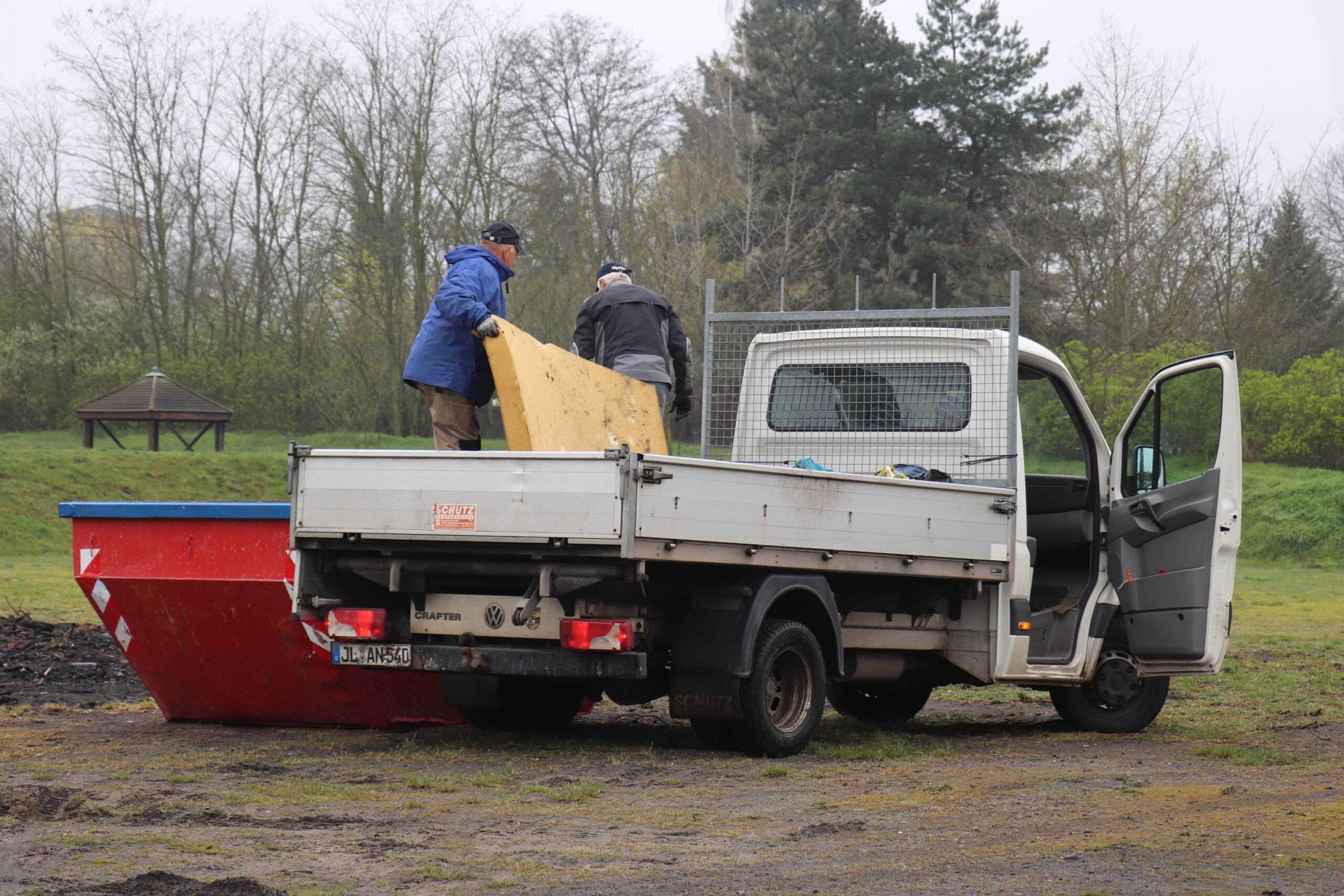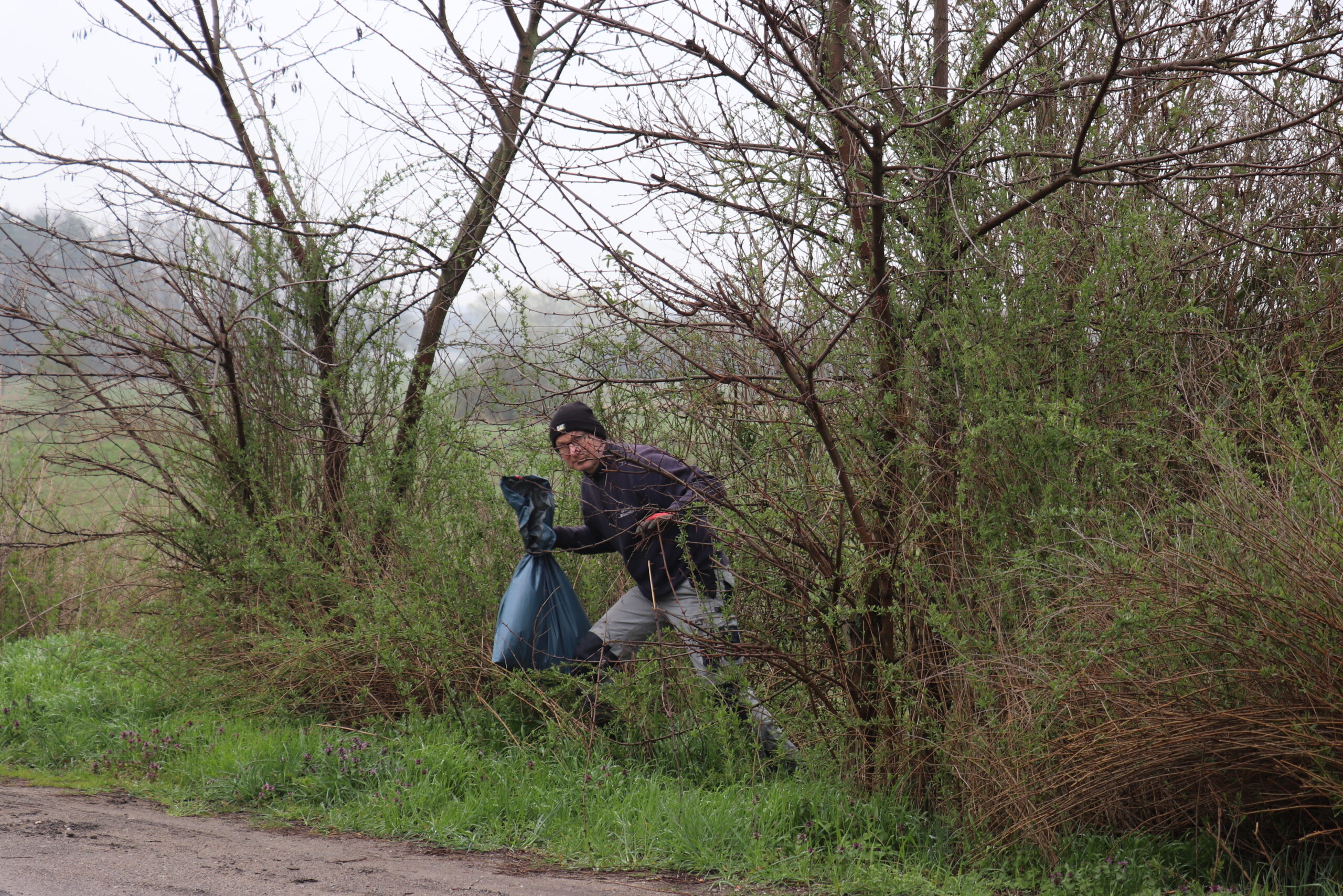 Nach der Begrüßung gingen die Freiwilligen mit Eimern bzw. Müllsäcken ausgestattet los und sammelten weggeworfene Abfälle ein – dieses Mal vorrangig in Richtung Lostau. Dabei wurde neben vielen Fast-Food-Verpackungen und leeren Flaschen auch ein alter Autoreifen und eine Schaumstoffmatratze aus einem Entwässerungsgraben gezogen und entsorgt.